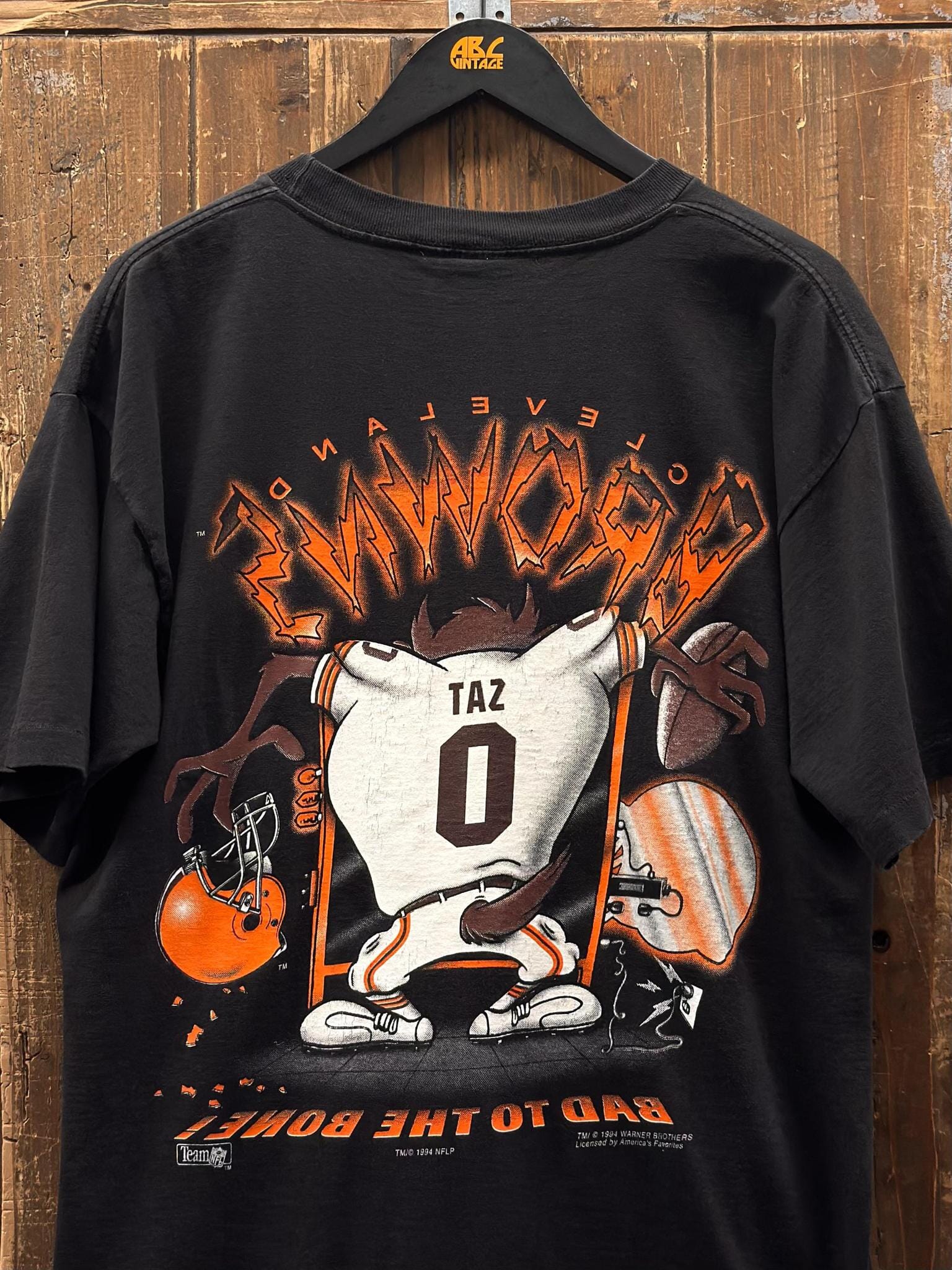 Cleveland Browns Vintage 1994 Taz Bad To The Bone Tee Faded Black