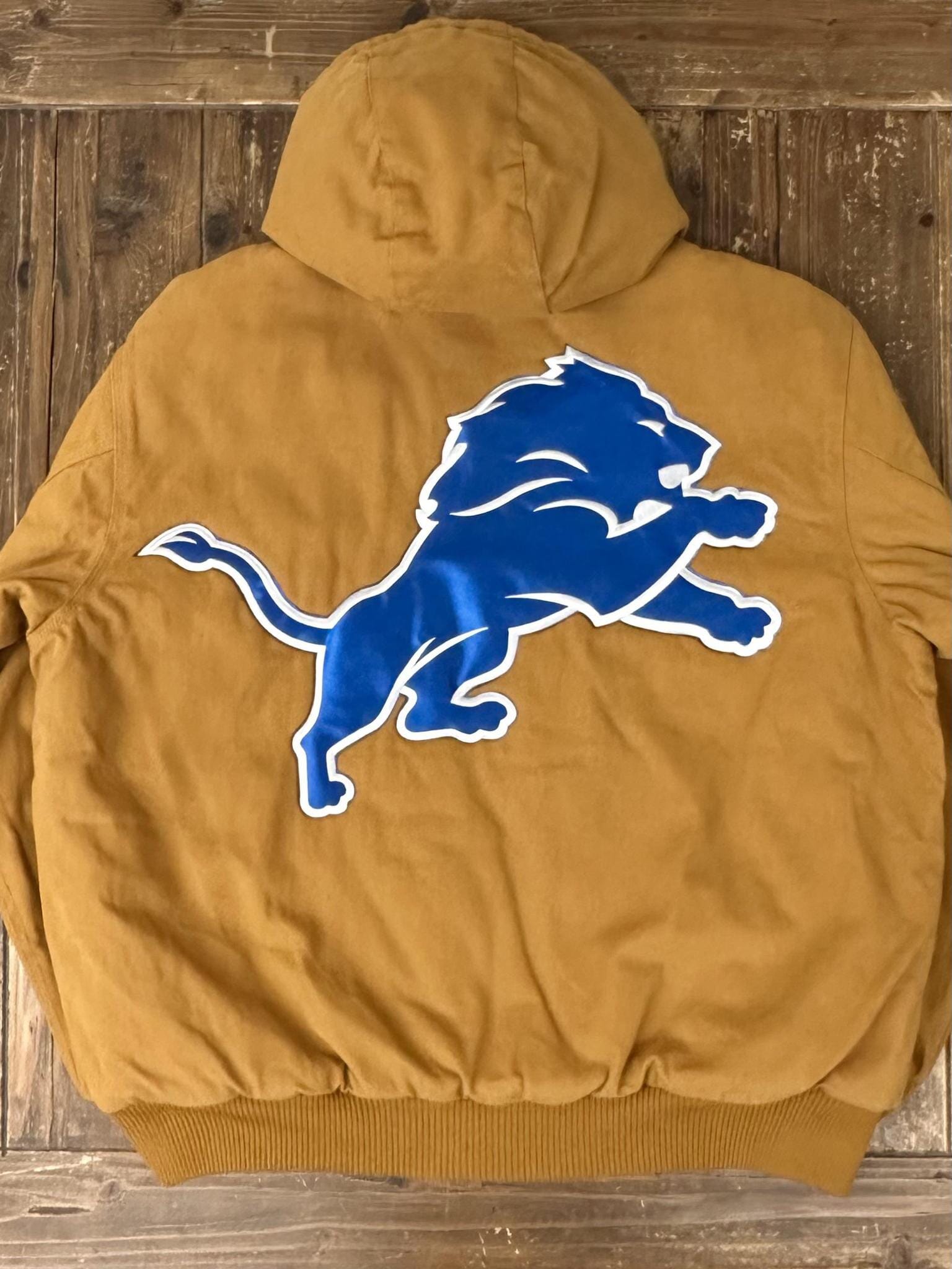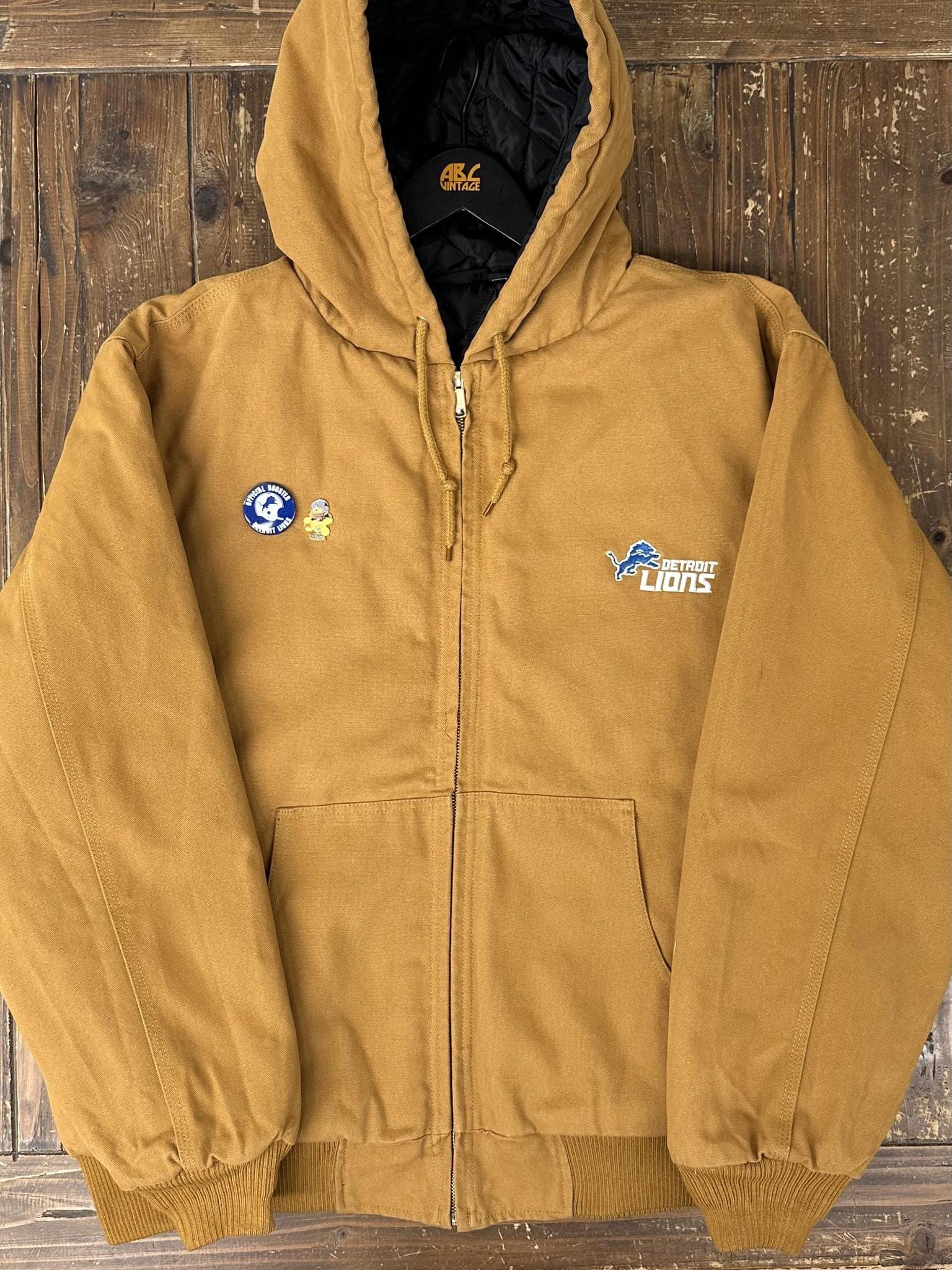 ABC Vintage 1 of 1 Custom Detroit Lions Dunbrooke Hooded Zip Up Work Jacket Brown