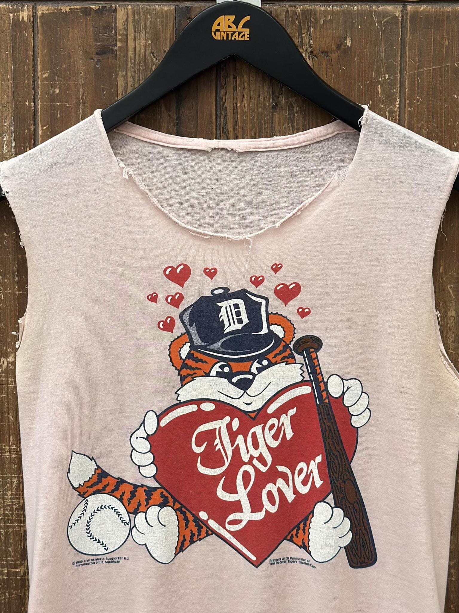 Detroit Tigers Vintage 1985 Tiger Lover Cutoff Tee Paper Thin Pink