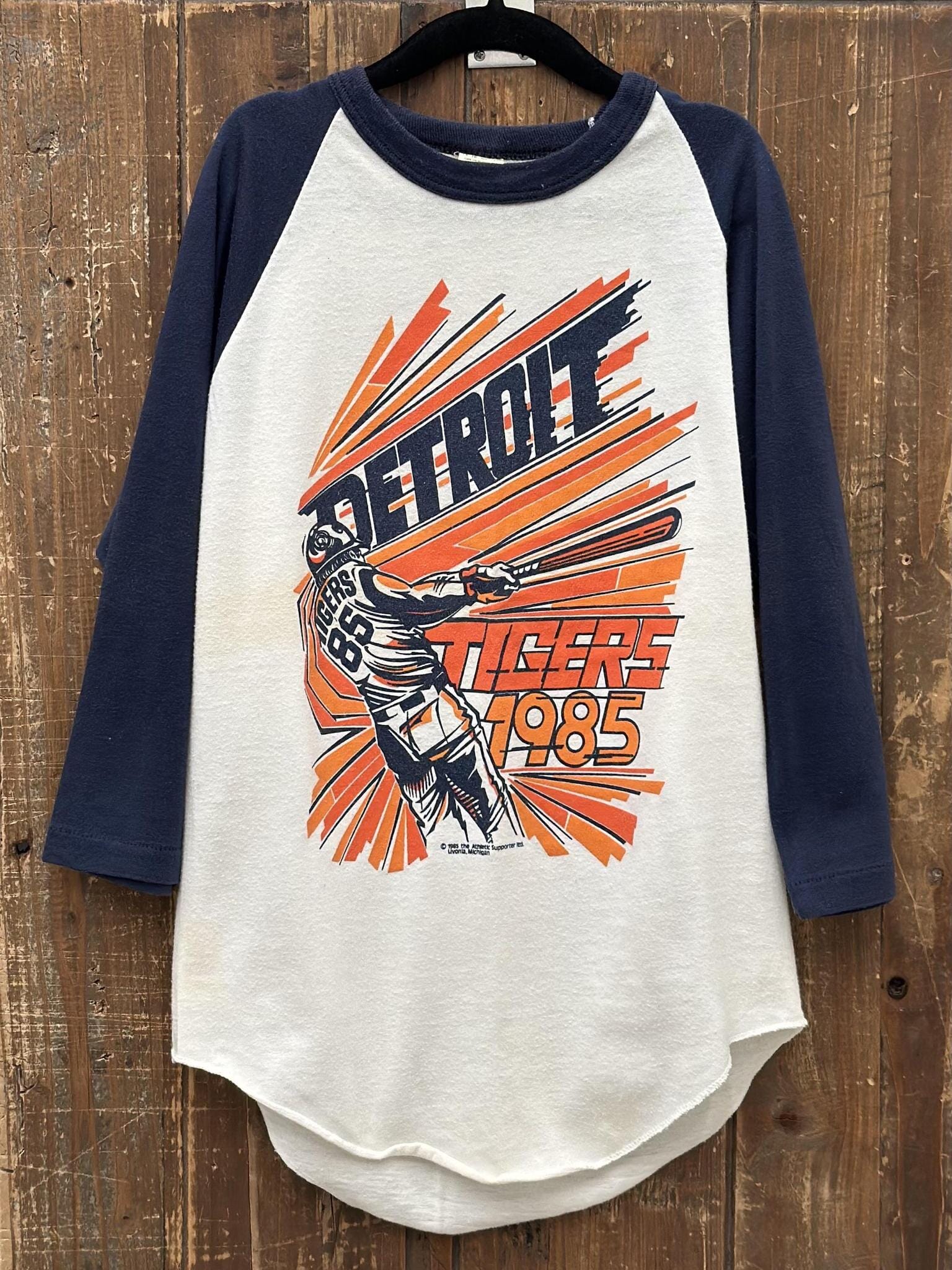 Detroit Tigers Vintage 1985 Youth Raglan Tee White Navy
