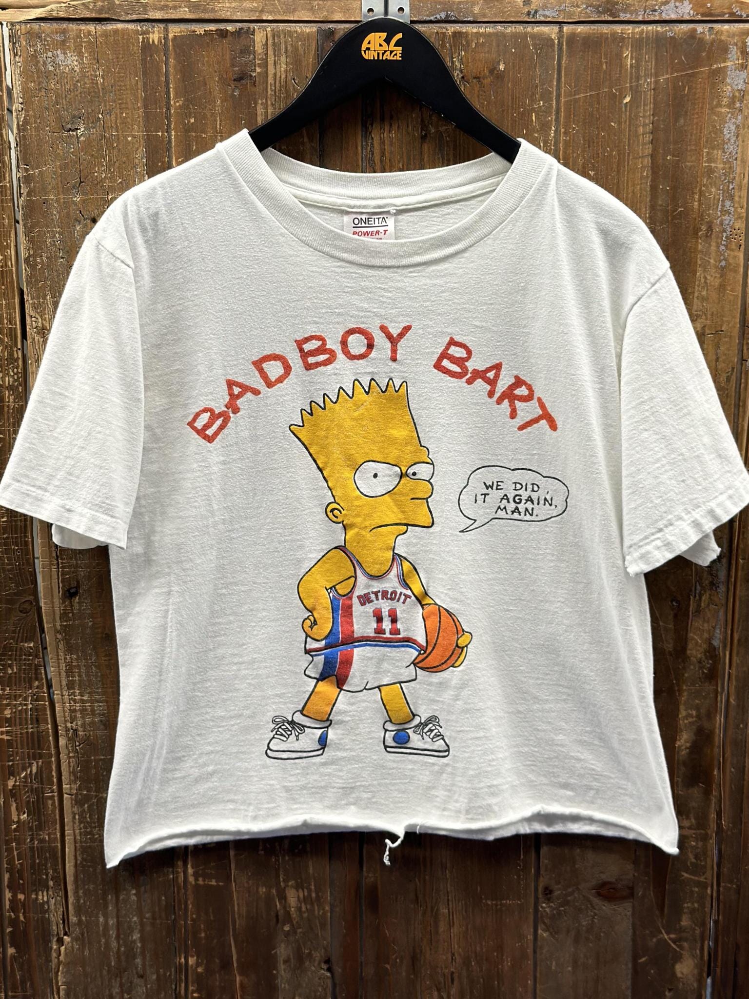 Detroit Pistons Vintage 90s Bad Boy Bart Simpson We Did It Again Man Cropped Tee White
