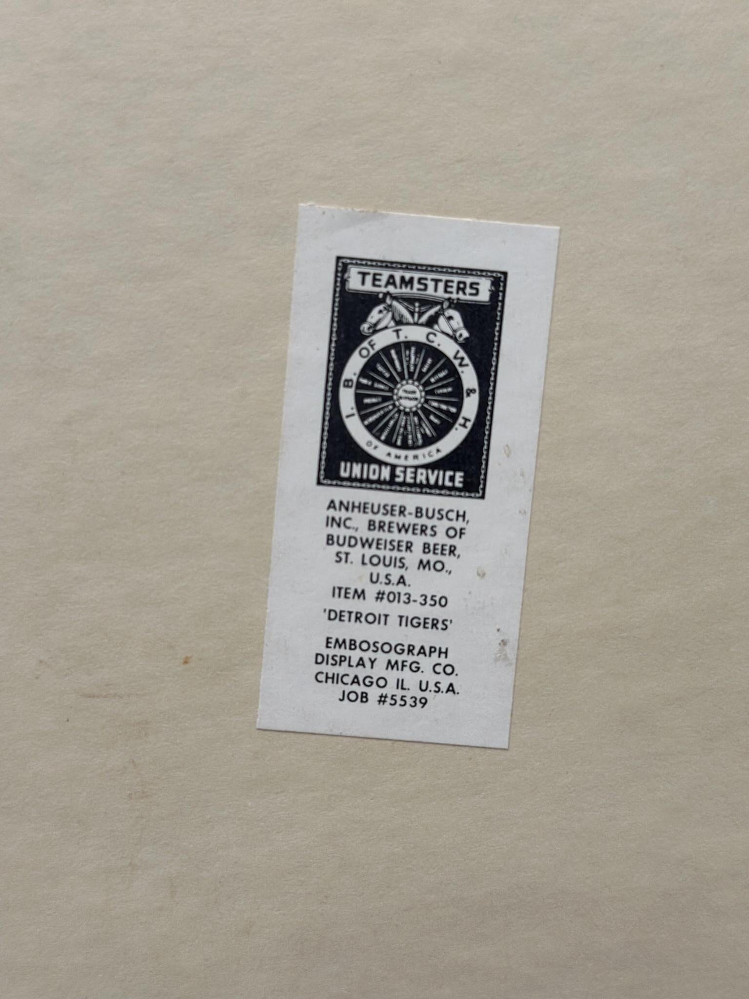 Detroit Tigers Vintage 1984 Teamsters Budweiser Embosograph Wall Art