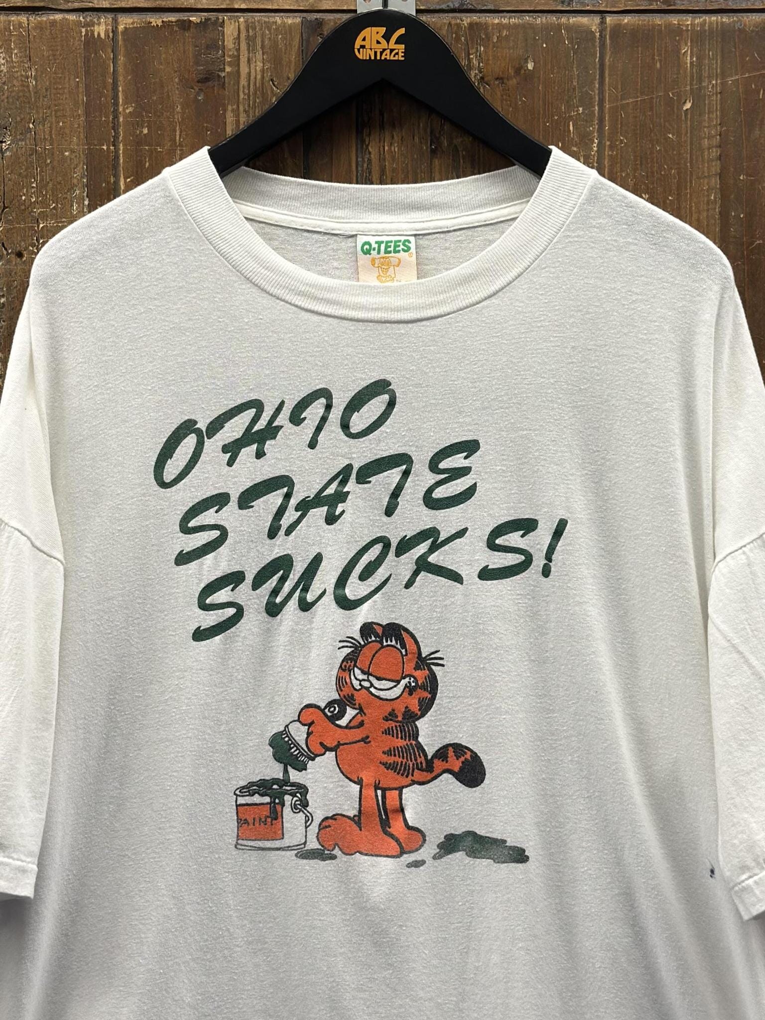 Michigan State Vintage 90s Ohio State Sucks Garfield Boxy Tee White