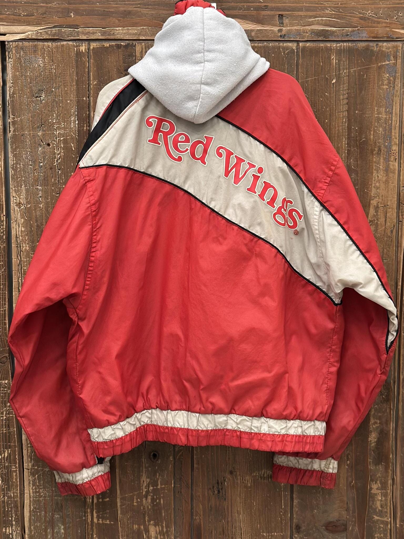 Detroit Red Wings Vintage 90s Youth Hooded Windbreaker Jacket Red Cream