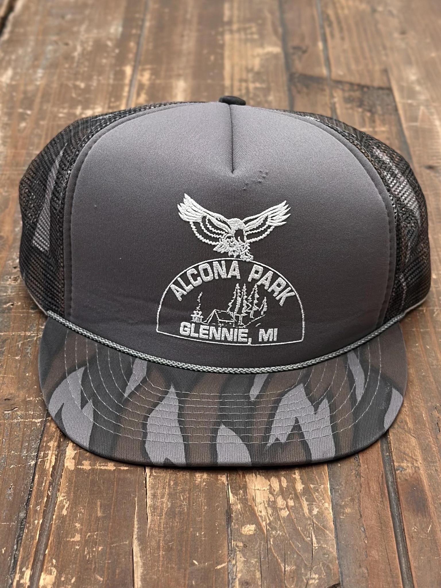 Alcona Park Glennie Michigan Vintage 80s Trucker Hat Grey Camo