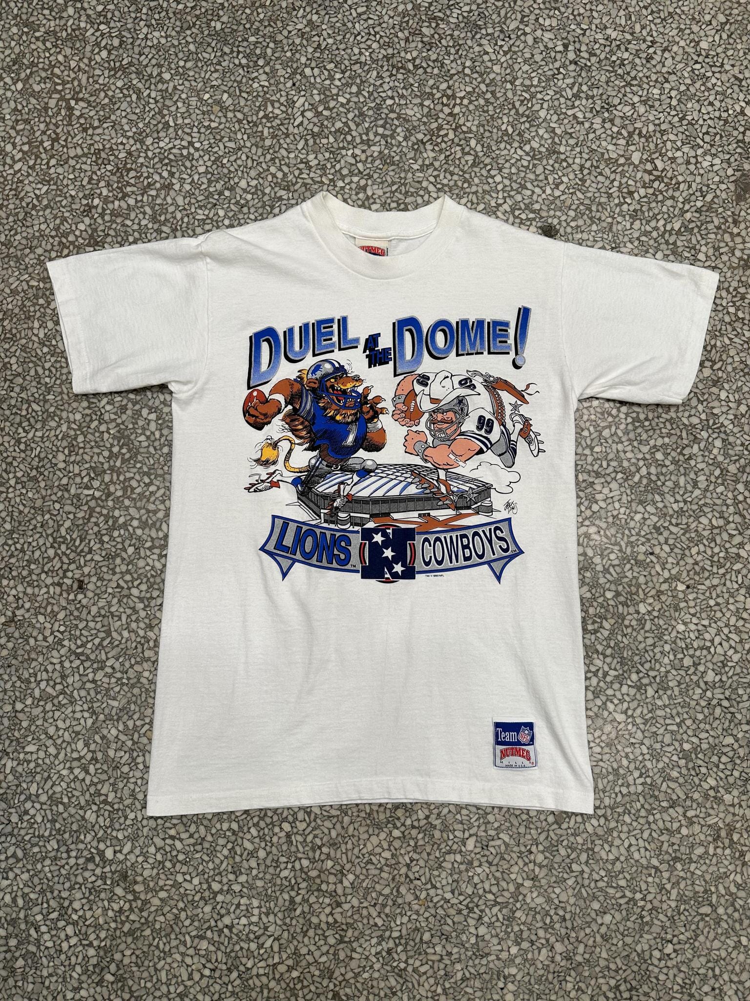 Detroit Lions VS Dallas Cowboys Vintage 1990 Jack Davis Duel At The Dome Tee White