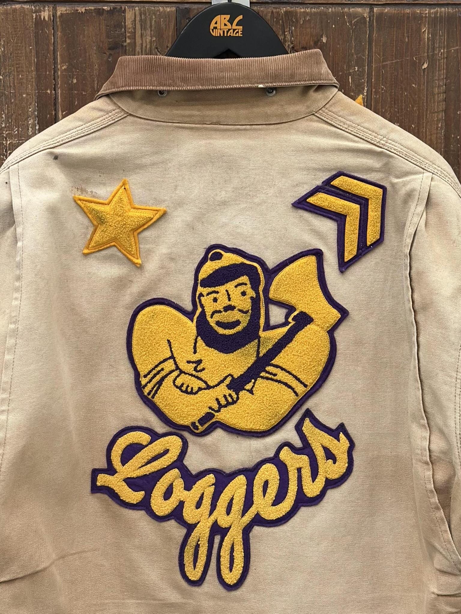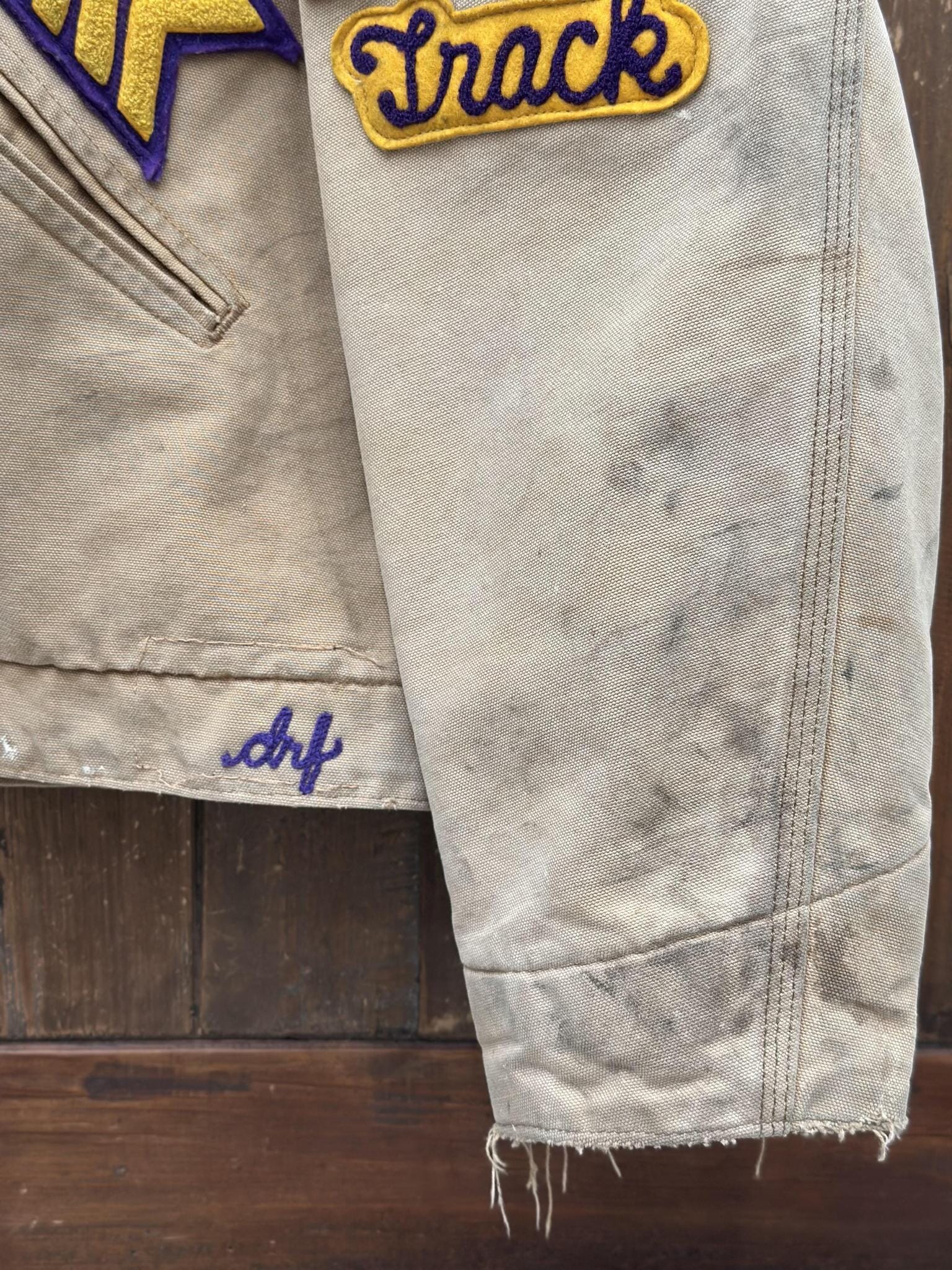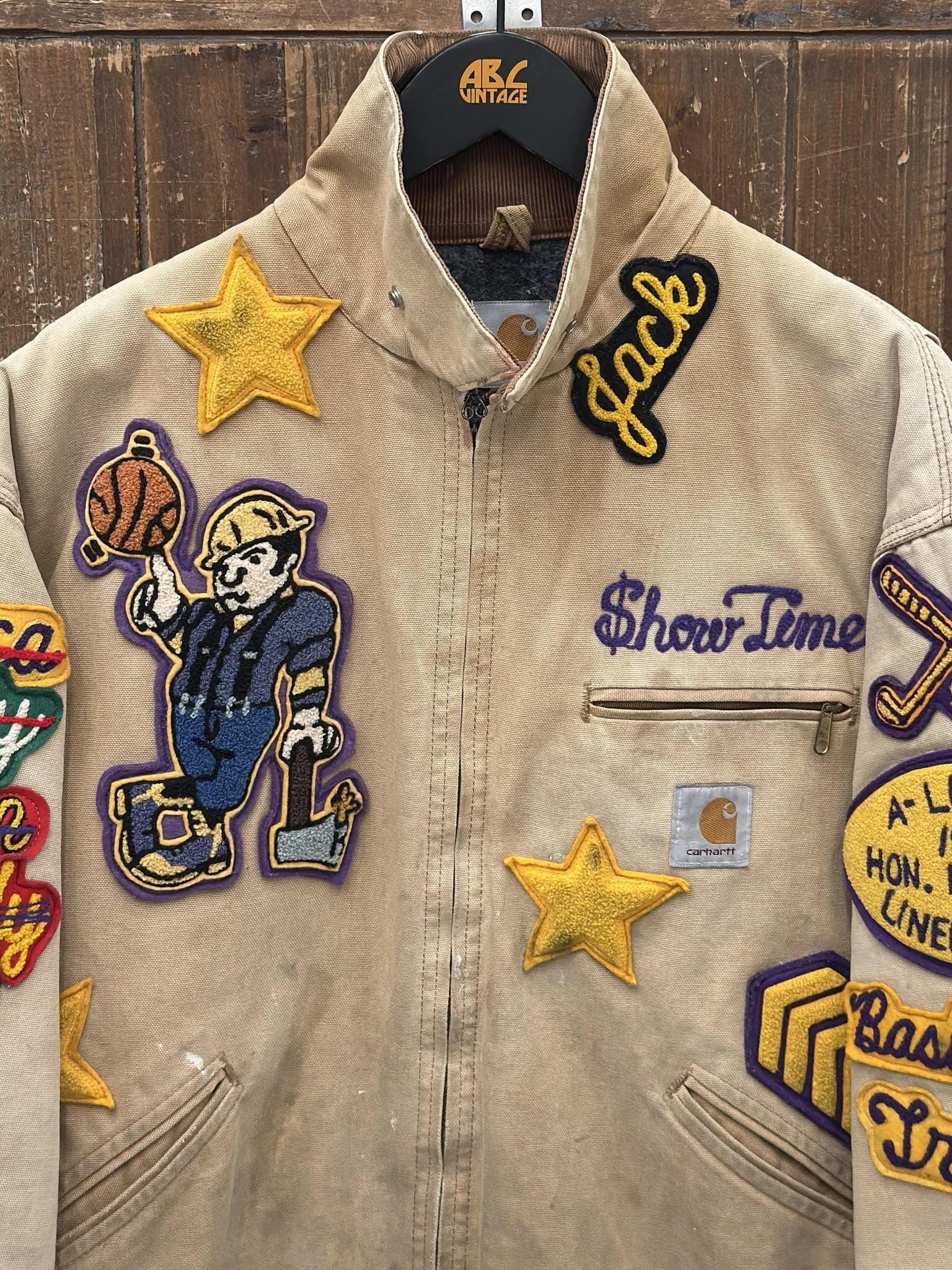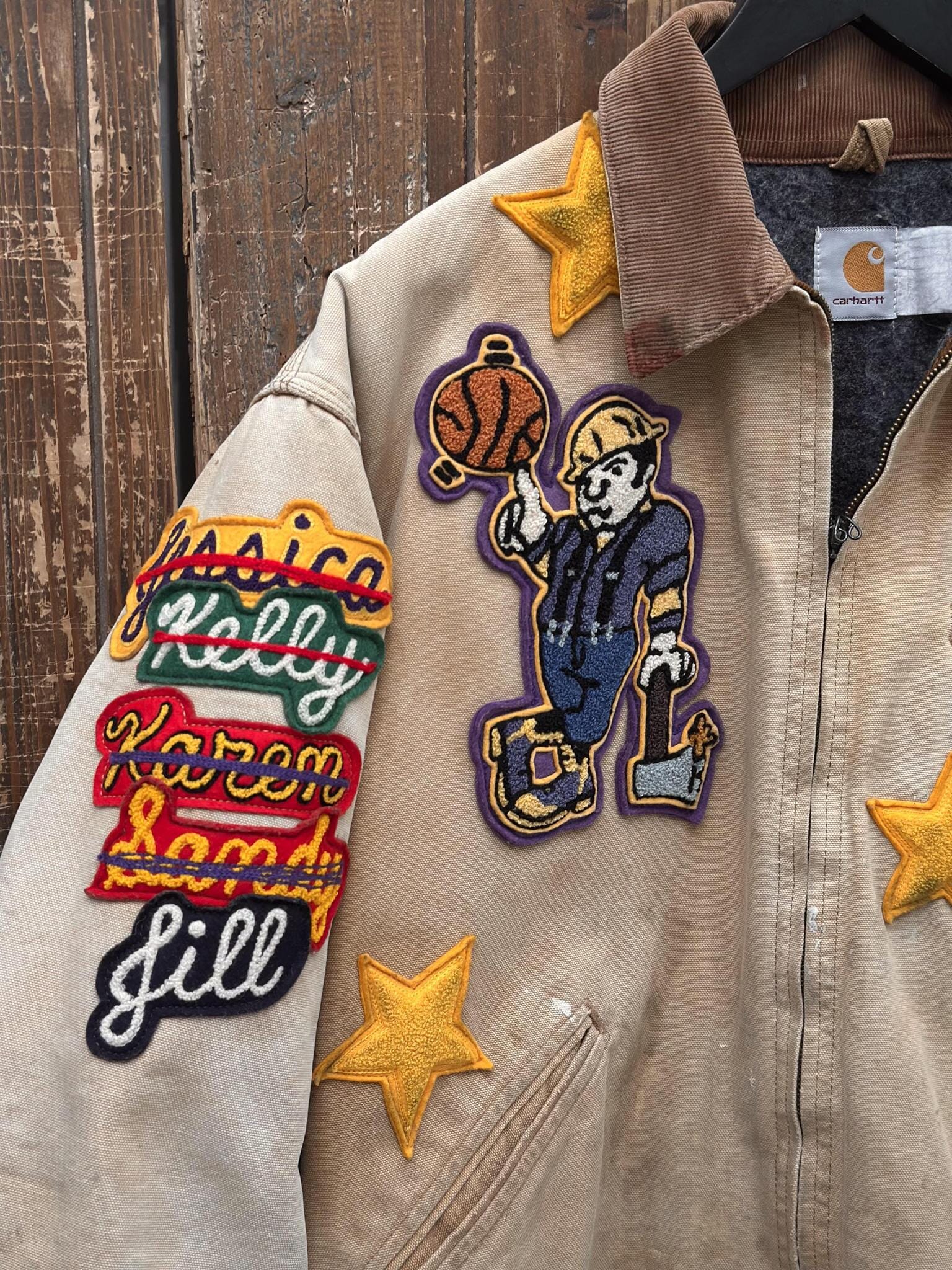 Carhartt Vintage 90s 1 of 1 Custom Chenille Patches Blanket Lined Faded Brown Detroit Jacket
