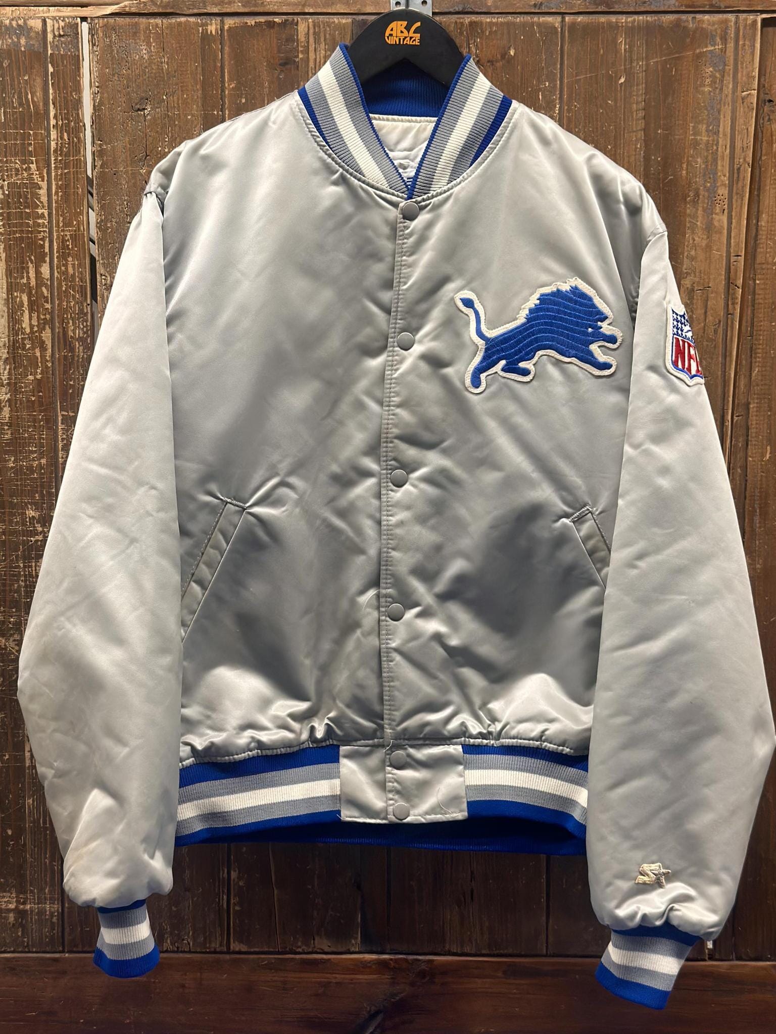 Detroit Lions Vintage 90s Pro Line by Starter Satin Bomber Jacket Silver