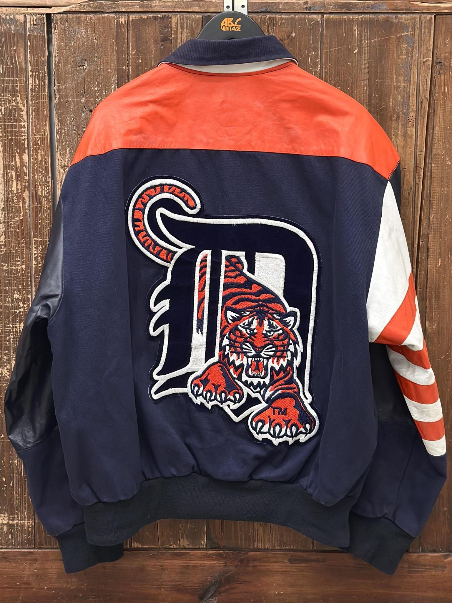Detroit Tigers Vintage 90s Leaping Tiger Through D Jeff Hamilton Varsity Jacket Navy Orange