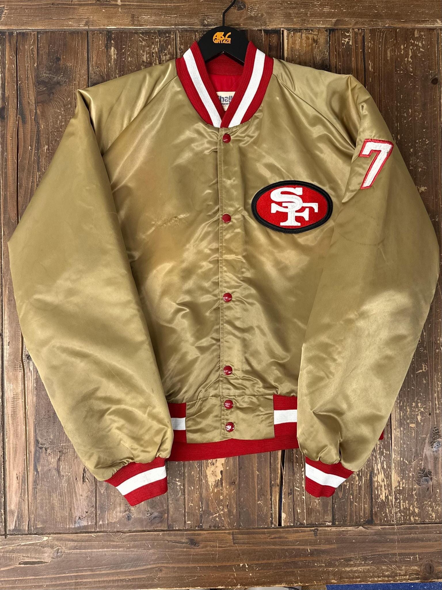 San Francisco 49ers Vintage 90s Chalk Line Spell Out Satin Bomber Jacket Gold