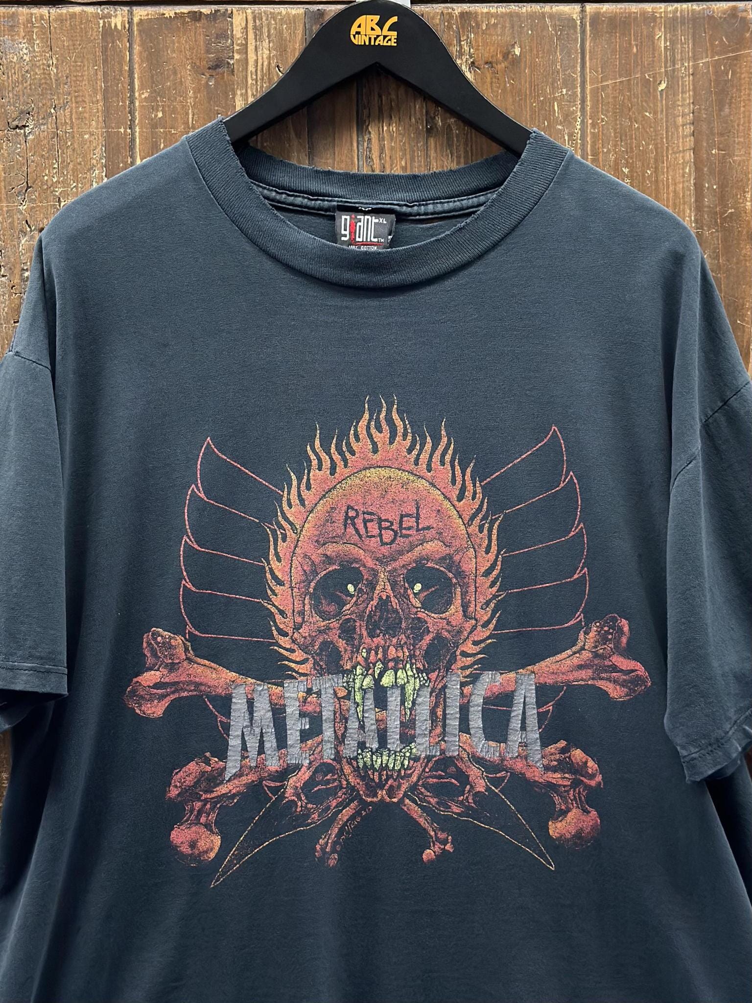 Metallica Vintage 90s Rebel Giant Tee Thrashed Faded Black